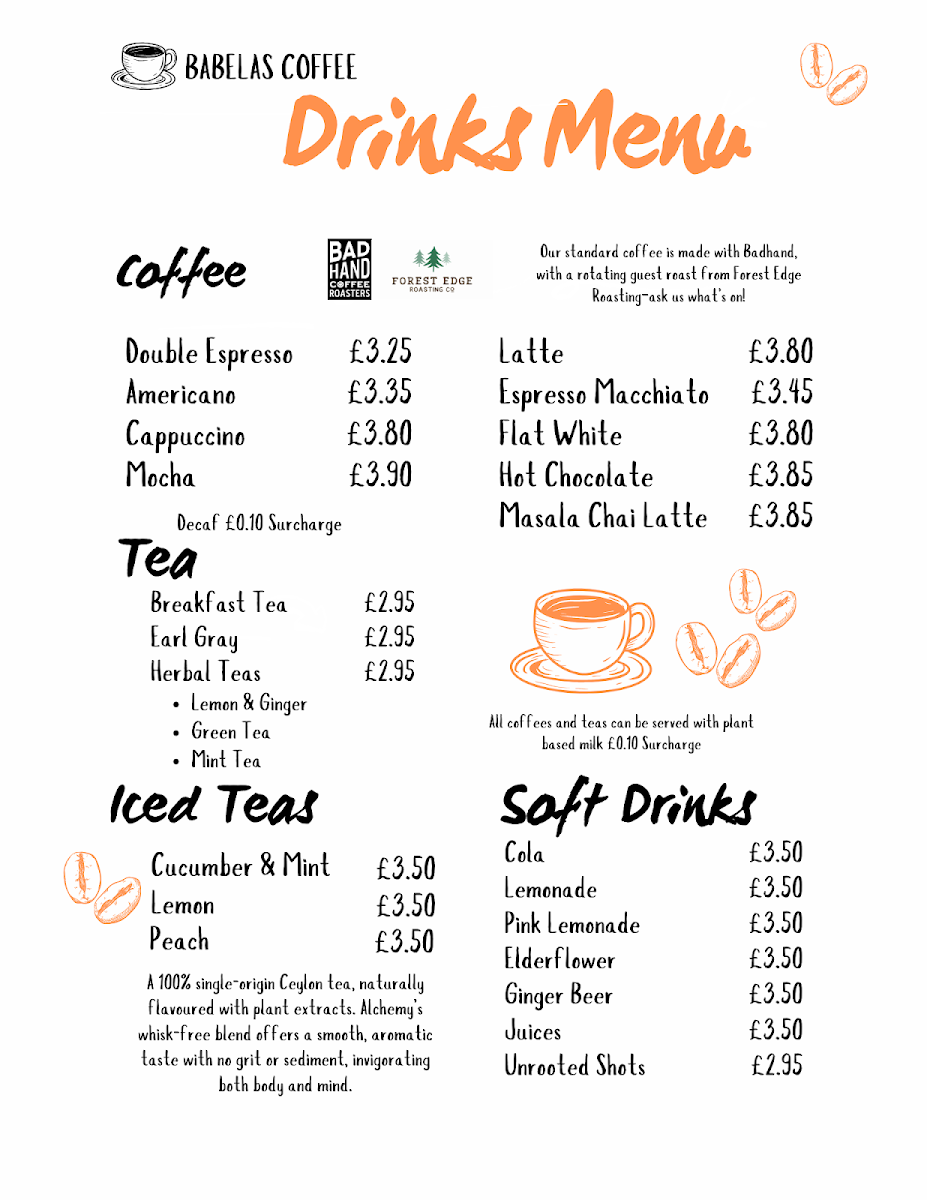 Introducing the menu of Babelas, a charming cafe nestled in the heart of Lymington at 20 High St. This delightful spot blends a cozy atmosphere with an enticing selection of Mediterranean-inspired dishes. Diners can indulge in signature items like the acclaimed avocado smash, complemented by delightful sides such as poached eggs and halloumi. Those looking to refresh can choose from a variety of iced teas, including cucumber & mint and peach, priced at a reasonable £3.50.